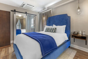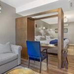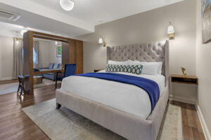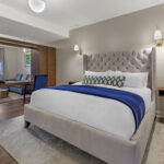 After a busy day, loosen your tie or kick off your heels and sink into relaxation. Perhaps you’ll settle onto a plush, button-tufted couch illuminated by soft overhead lighting, or instead stretch out on a king-size bed with your choice of a fluffy or firm mattress beneath a luxurious upholstered headboard.
