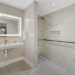 As the day winds down, transition effortlessly from work to rest as you step into the immense walk-in, glass-enclosed shower, where at once calmness surrounds you. When evening hunger calls, savor a delectable meal delivered right to your door; afterward, sip handcrafted cocktails infused with local Hillsborough flavors—each offering unique twists to keep your palate delighted.