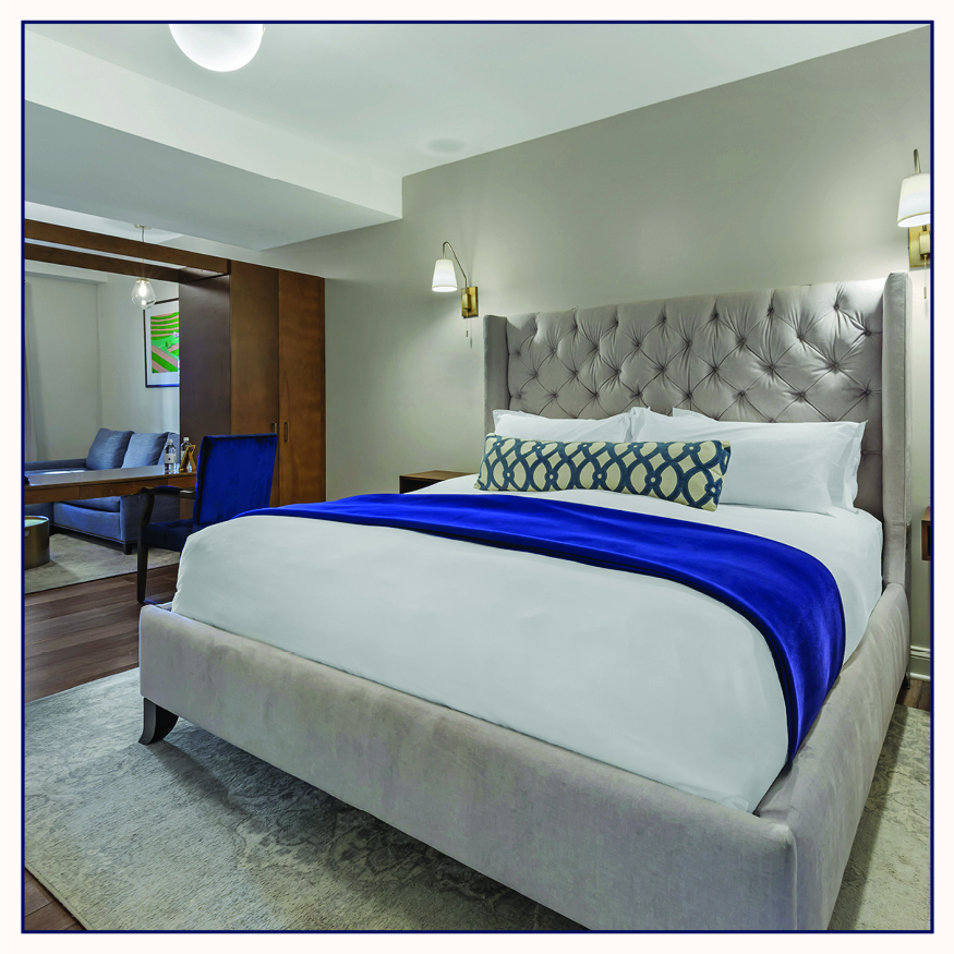 After a busy day, loosen your tie or kick off your heels and sink into relaxation. Perhaps you’ll settle onto a plush, button-tufted couch illuminated by soft overhead lighting, or instead stretch out on a king-size bed with your choice of a fluffy or firm mattress beneath a luxurious upholstered headboard.